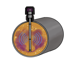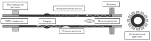 Система использует направленные УЗ волны, которые распространяются вдоль стенки трубы и отражаются от дефектов и потерь металла.