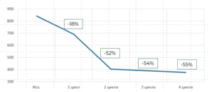 - Снижение вязкости нефти на 55% (за 4 цикла);